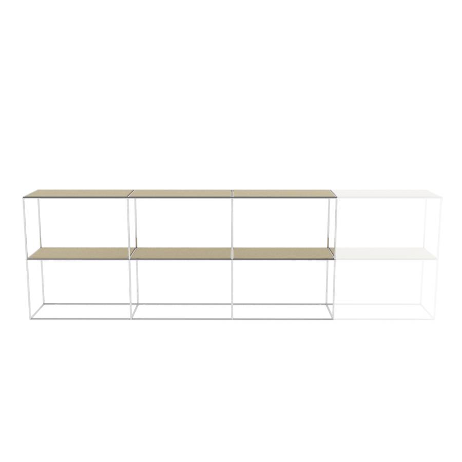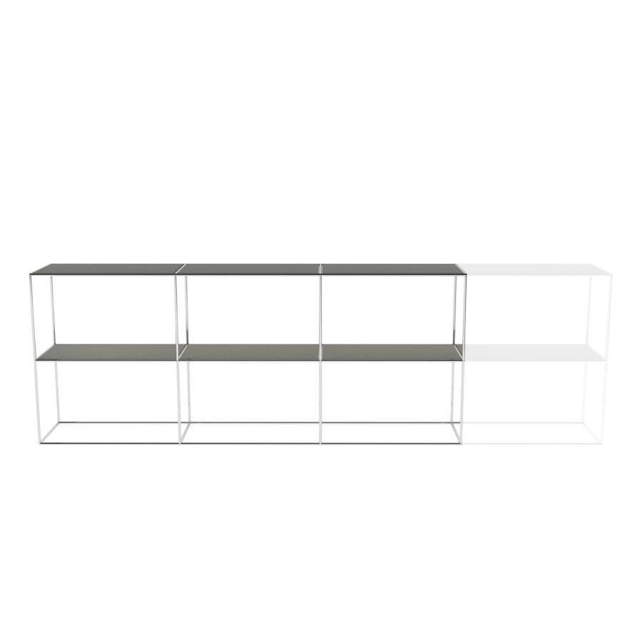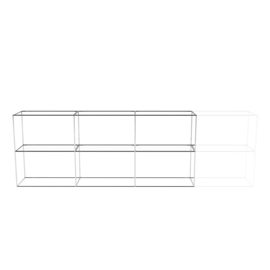 Cabinet with rectangular elements and 3 columns wide. Frame color is white.