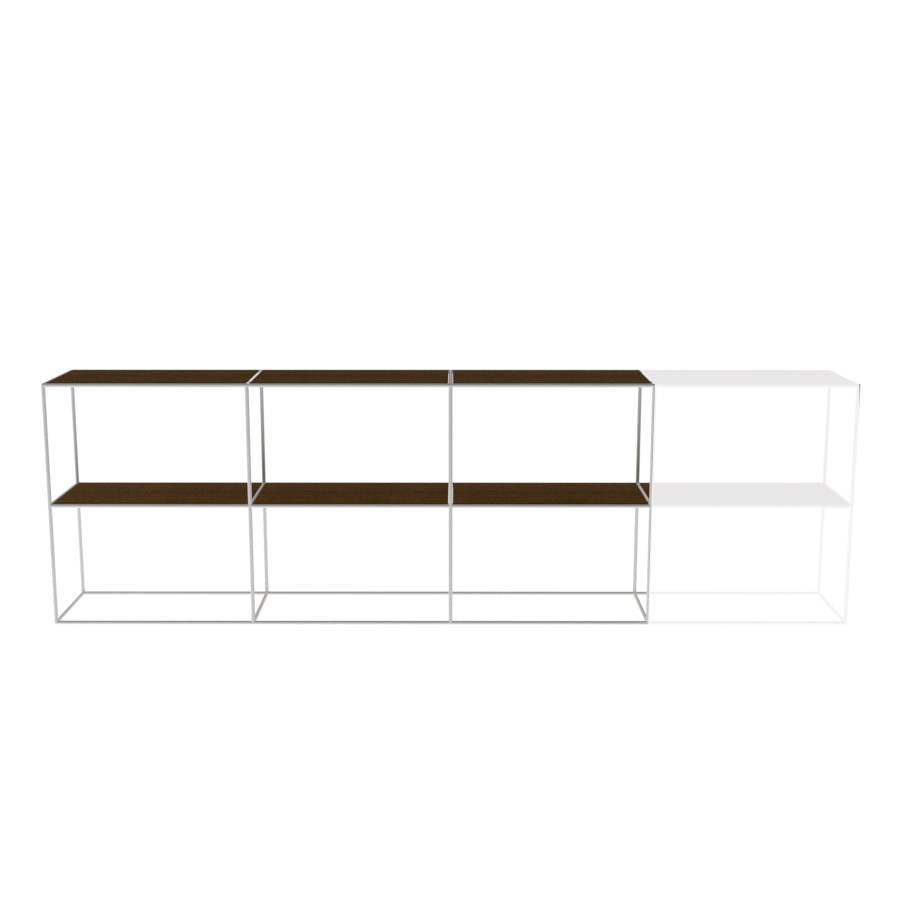 Cabinet with rectangular elements and 3 columns wide. Frame color is white.