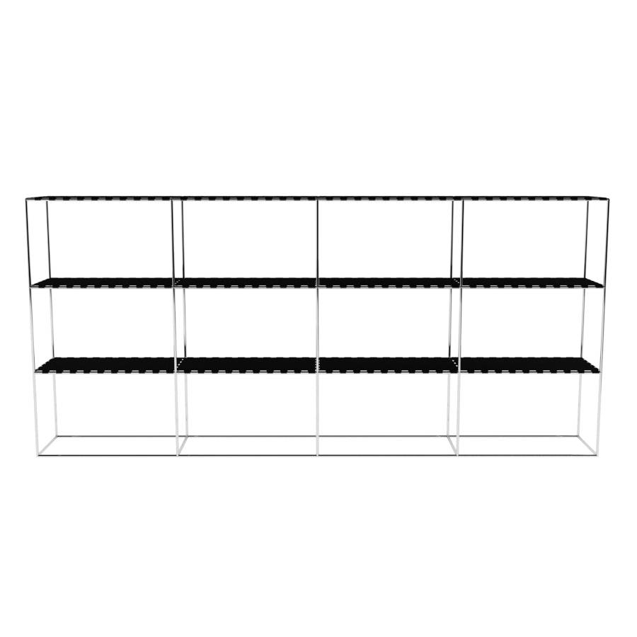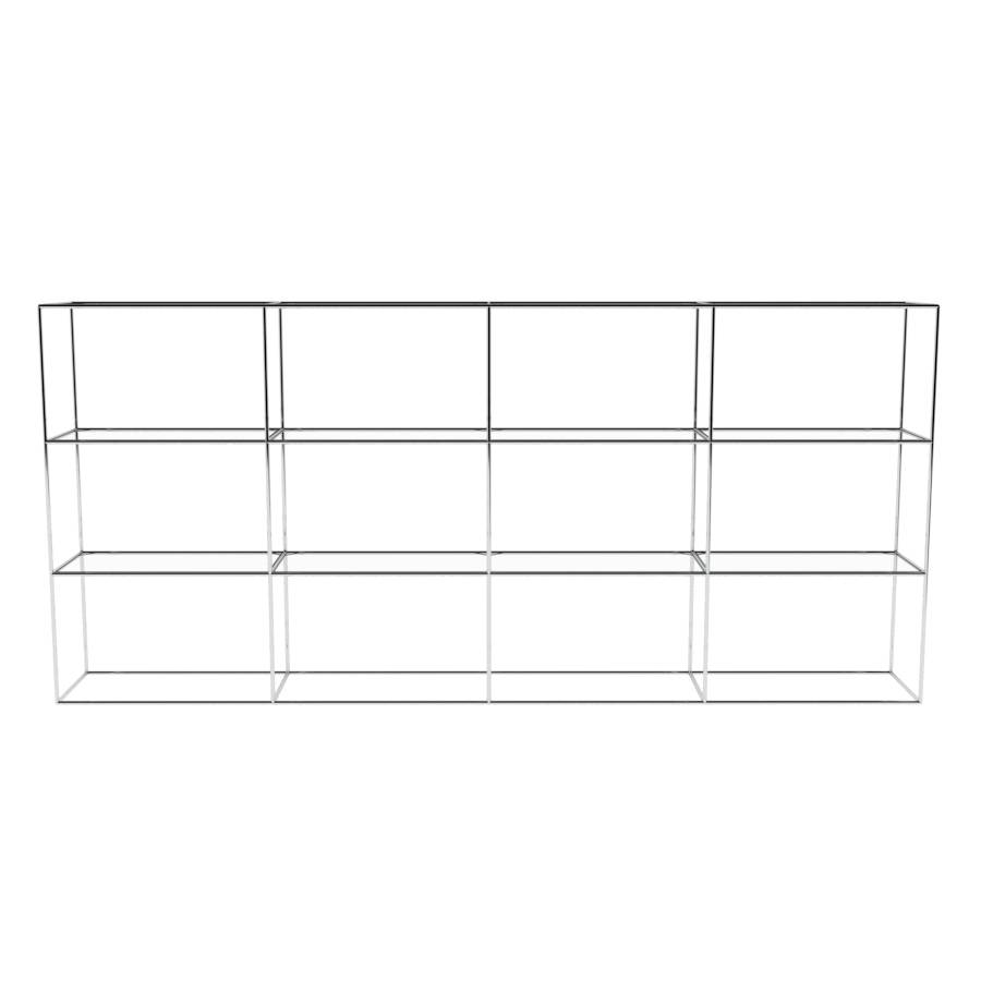 Cabinet with rectangular elements and 4 columns wide. Frame color is chrome.