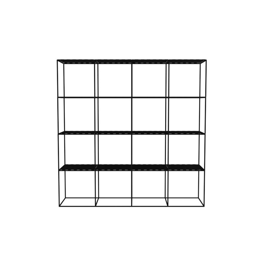 Cabinet with square elements and 4 columns wide. Frame color and the metal Classic shelves are black.