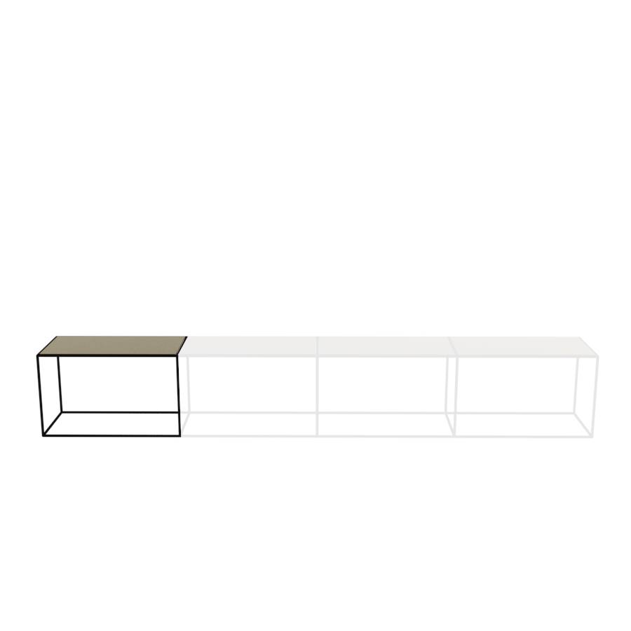 Modulaire kast met rechthoekige elementen en 1 kolom breed. Metalen frame is mat zwart. Diverse afmetingen en legborden/bladen.