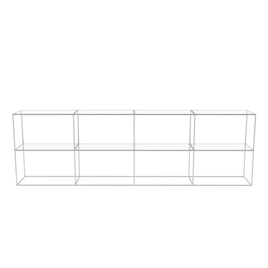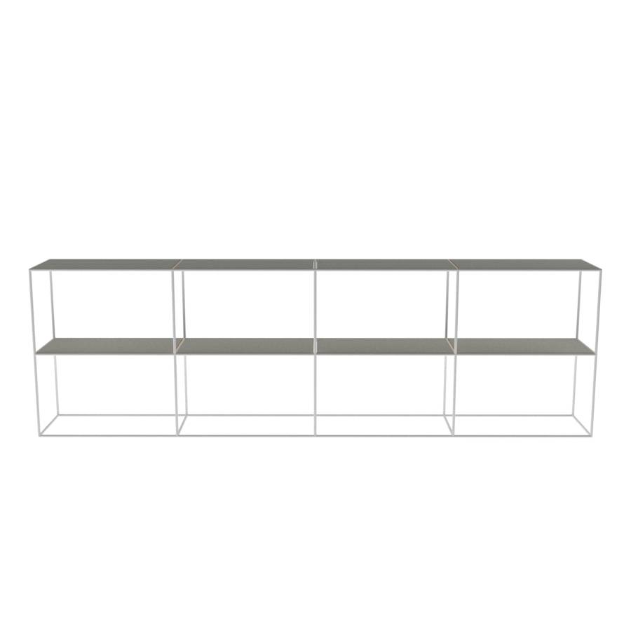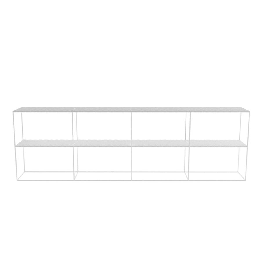 Kast met rechthoekige elementen en 4 kolommen breed. Framekleur is wit.