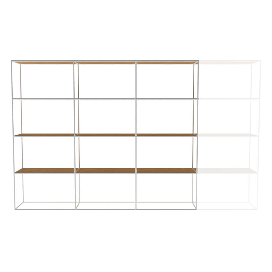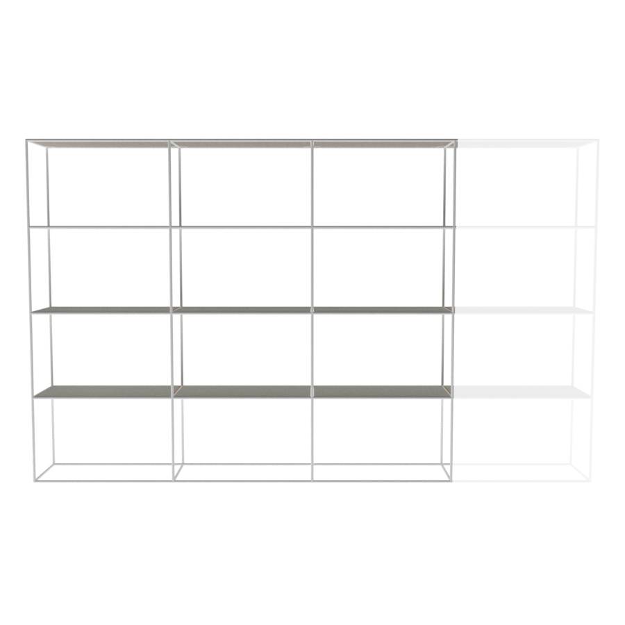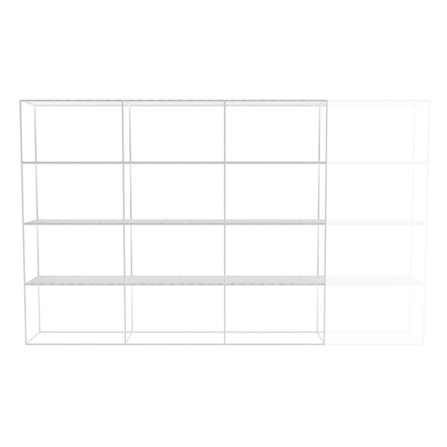 Kast met rechthoekige elementen en 3 kolommen breed. Framekleur is hoogglans wit.