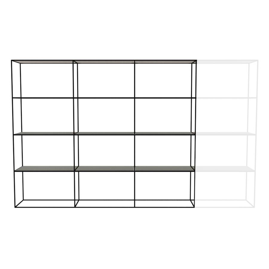 Kast met rechthoekige elementen en 3 kolommen breed. Framekleur is mat zwart.