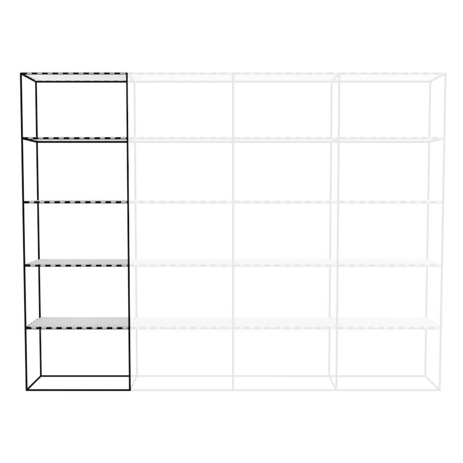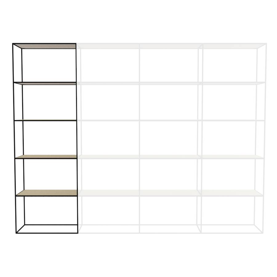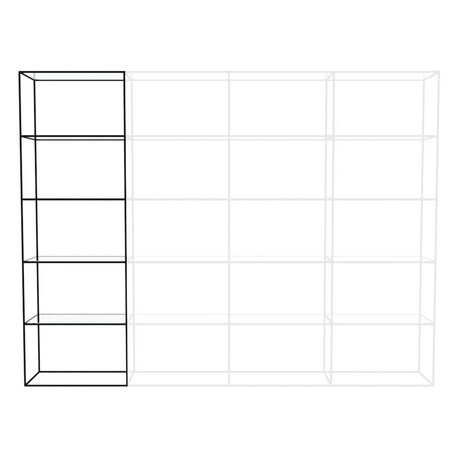 Kast met rechthoekige elementen en 1 kolom breed. Framekleur is mat zwart