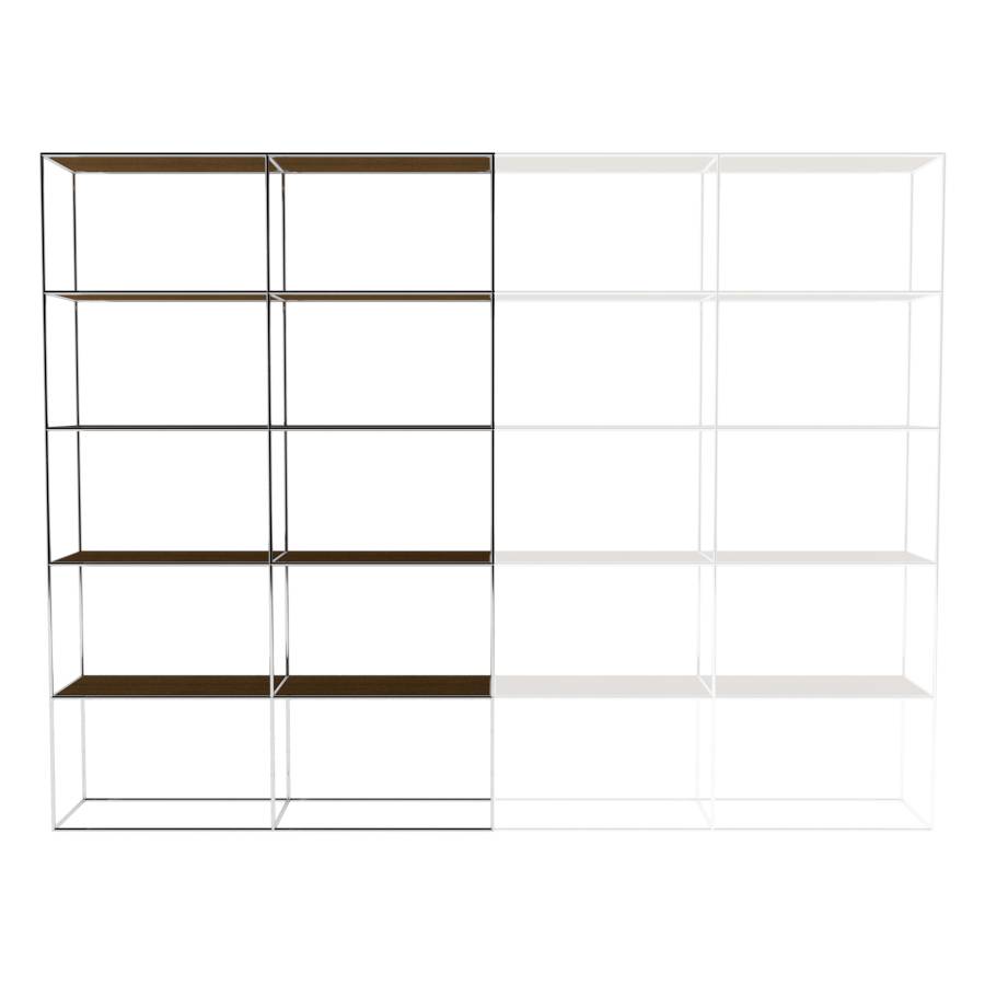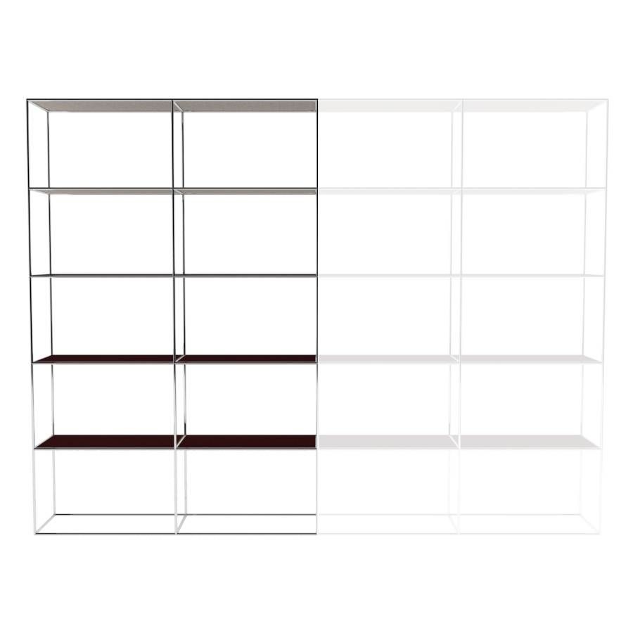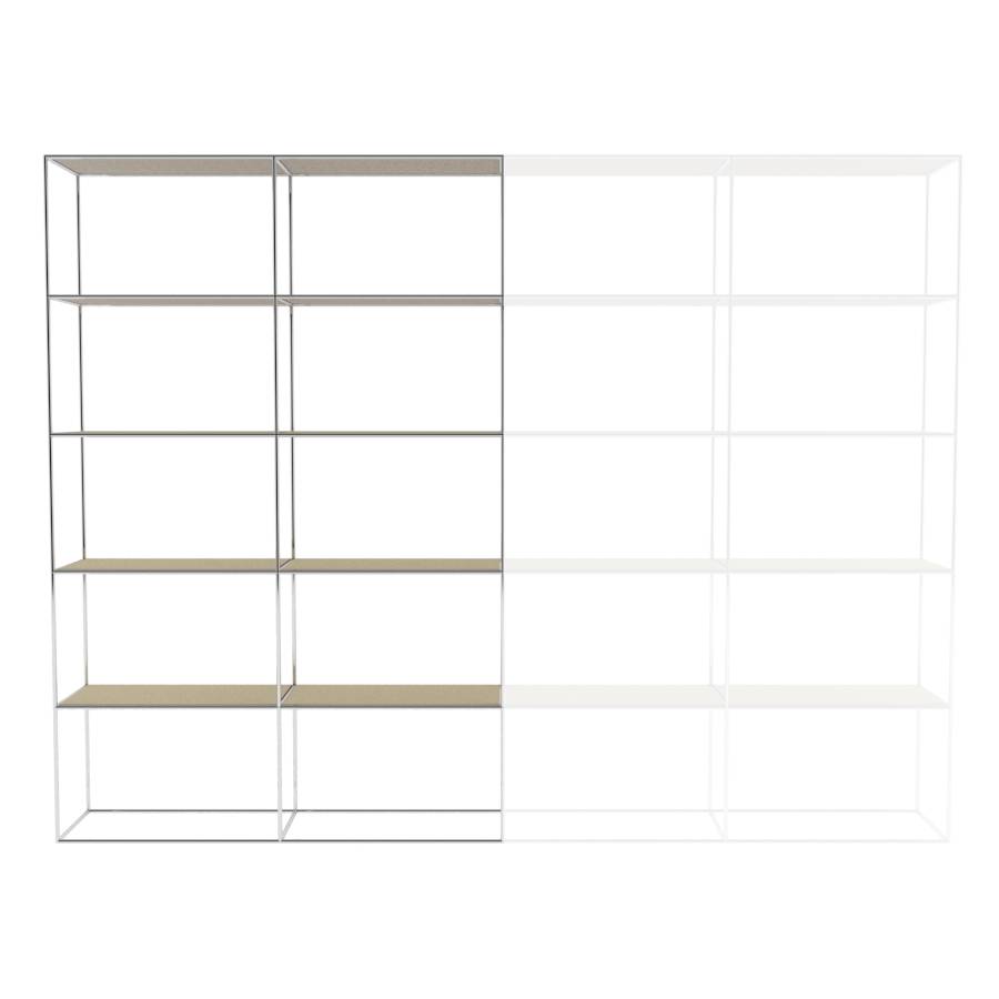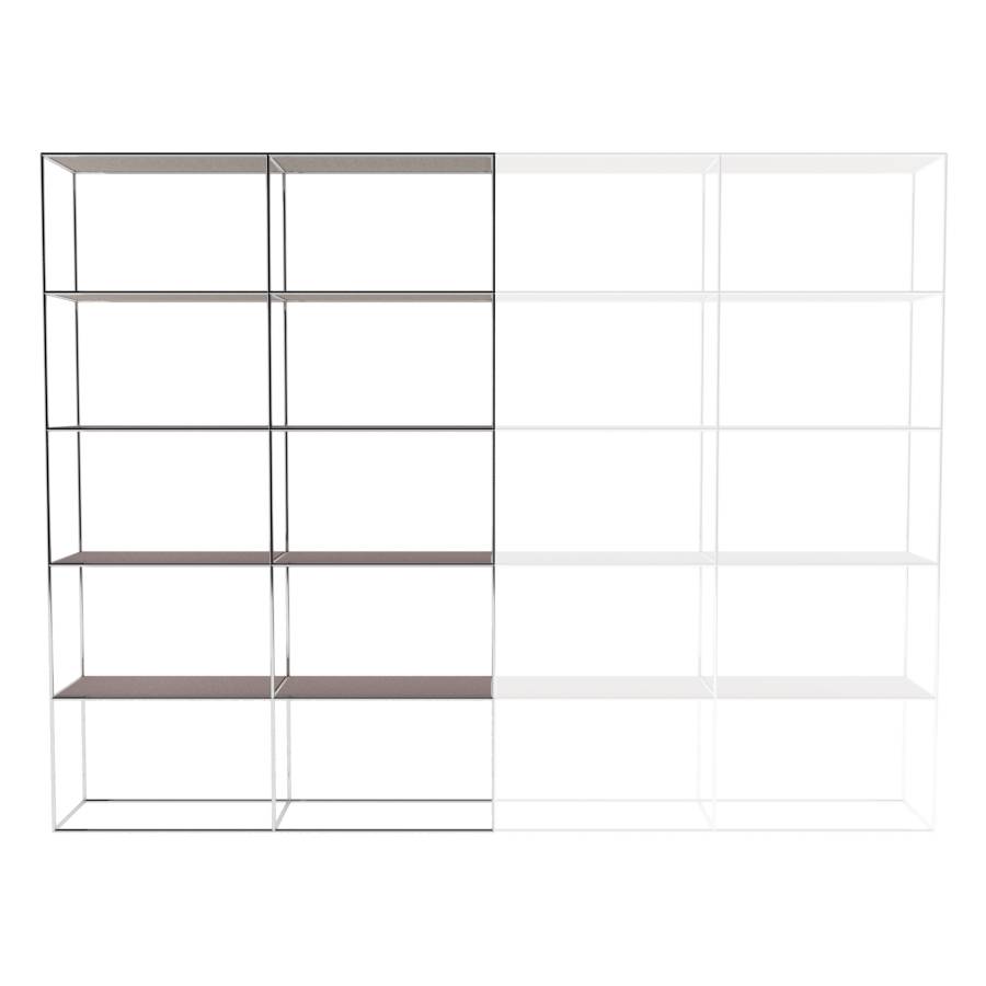 Modulaire hoge kast met rechthoekige elementen en 2 kolommen breed. Framekleur is chroom. Kies zelf de afmetingen en de legborden / planken.