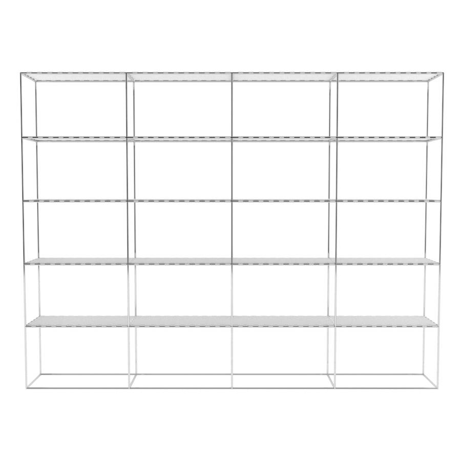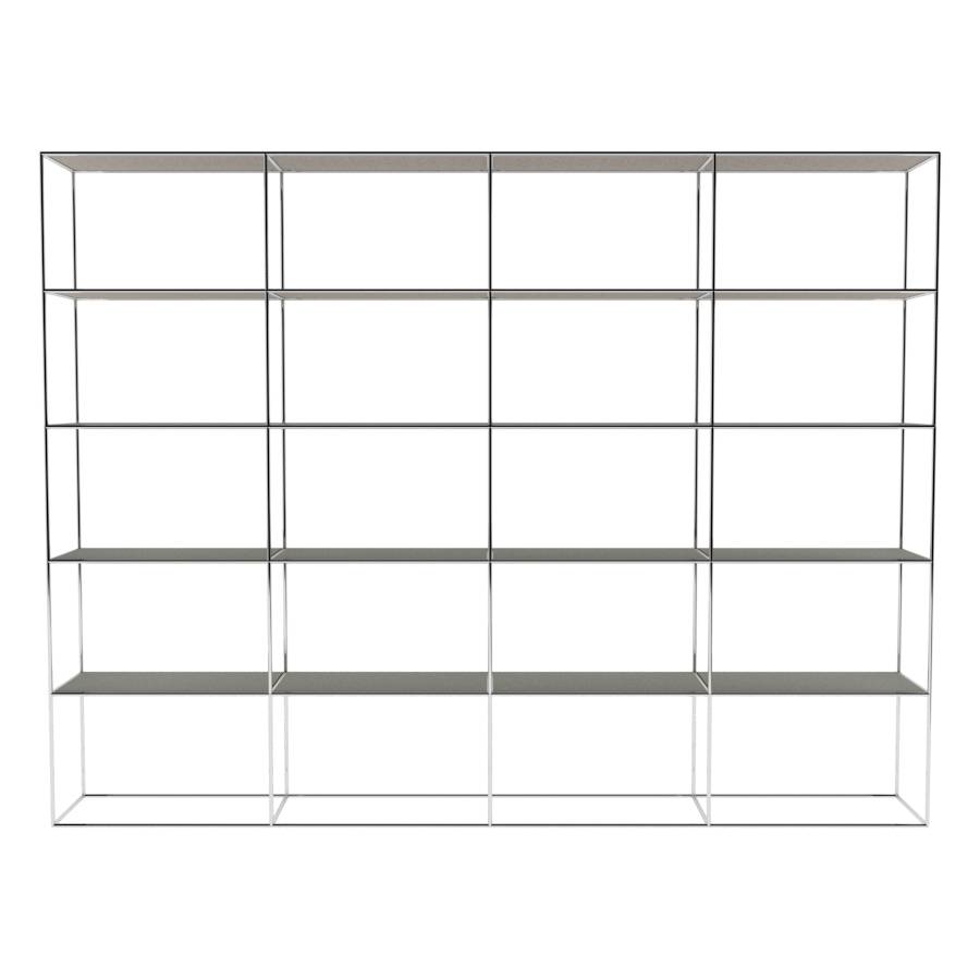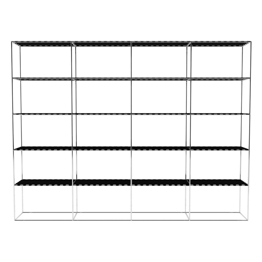 Grote modulaire Kast met rechthoekige elementen en 4 kolommen breed en 5 rijen hoog. Framekleur is chroom. Keuze uit diverse planken.