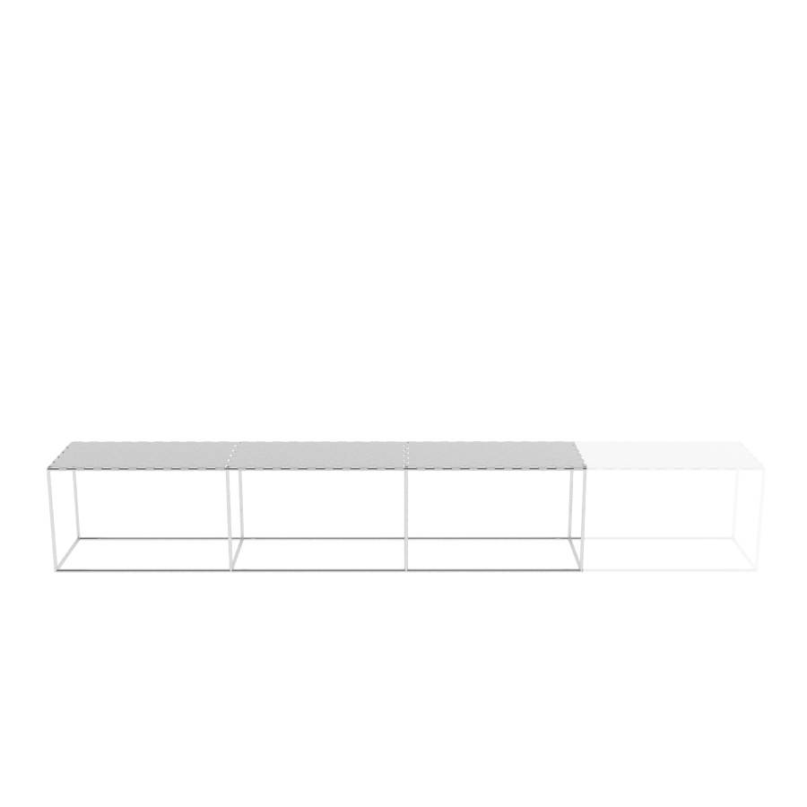 Modulaire lage kast met rechthoekige elementen en 3 kolommen breed. Framekleur is chroom.